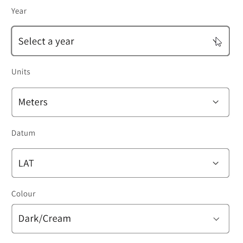 Customise further by choosing your tide year, colour theme, units of measurement.