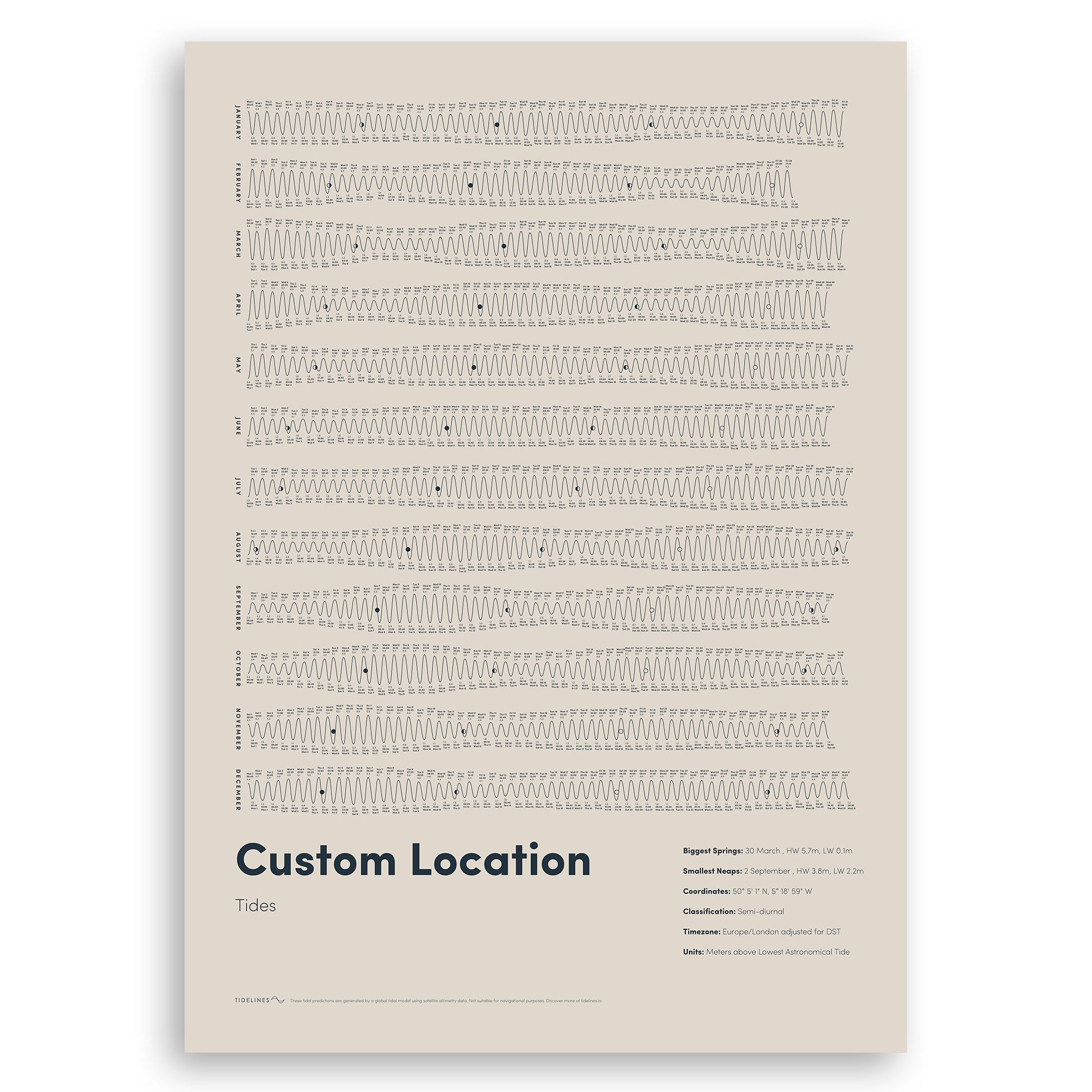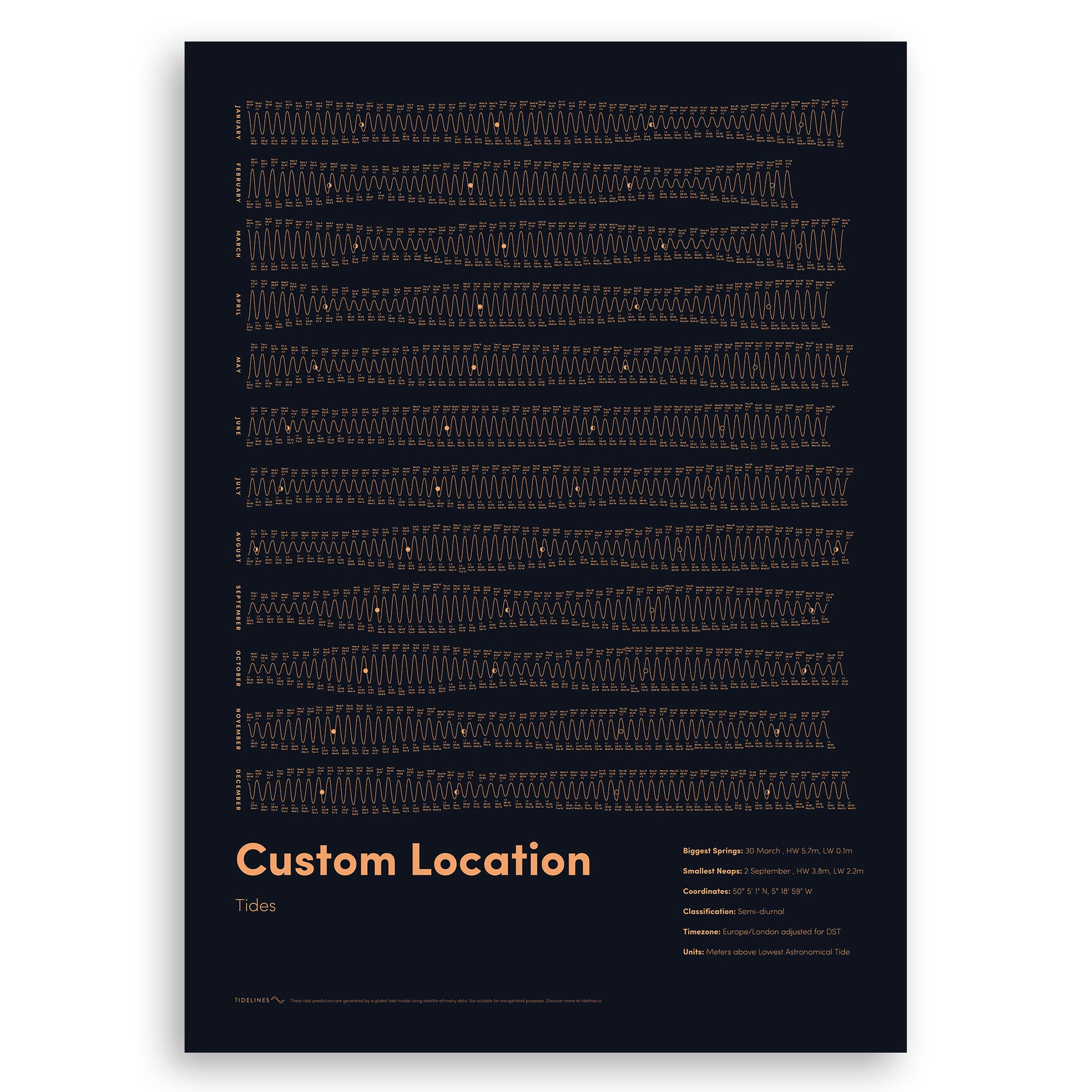 Design a custom tide poster for anywhere in the world.